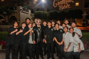 Bonita Unified ProStart culinary students rubbed elbows with some of the top executive chefs and restauranteurs in the state as they displayed their award-winning skills at the California Restaurant Foundation’s (CRF) biggest fundraiser of the year, The Grateful Table, which raised nearly $300,000 to support California Cares, a relief fund for California restaurant workers. Held in September at the Del Mar Racetrack, The Grateful Table saw ProStart students from San Dimas and Bonita high schools work side by side with many renowned California chefs, including guest of honor Guy Fieri, to prepare a gourmet meal while BUSD ProStart alumni worked the front of the house, providing an exquisite experience for the event’s VIP guests and donors. San Dimas and Bonita were the only schools chosen to participate in this year’s event.