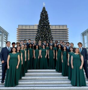 Sleigh bells will be ringing on Christmas Eve for the Bonita High School Chamber Singers as they deck the halls for the 66th Annual L.A. County Holiday Celebration, to be held at The Music Center’s Dorothy Chandler Pavilion, a festive night that showcases the artistry, talent, and cultural traditions of nearly two dozen Southern California-based artists at the storied concert venue. Bonita’s 32-member Chamber Singers will share the stage with a diverse cross-section of L.A. County’s finest performance acts, including singers, dancers, puppeteers, and brass bands. Each act will perform for five minutes during a live in-person show that will be broadcast live on PBS SoCal on Wednesday, Dec. 24 from 3 to 6 p.m. The Chamber Singers will perform during between 5 to 6 p.m.