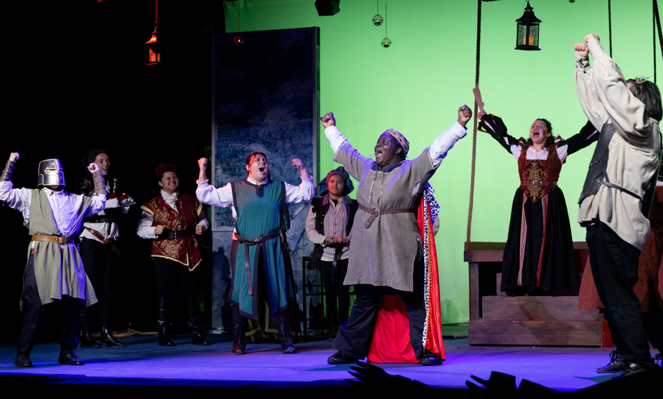 Johnson, the sole instructor overseeing Kaiser’s theater program, led students through more than 200 hours of rehearsal and production work, including extensive study of Shakespearean language and performance technique. Approximately 60% of the cast had never performed on stage before, yet students navigated complex staging, multiple sword-fight sequences, and a condensed adaptation of Shakespeare’s rarely produced play due to its notorious staging and story difficulties.