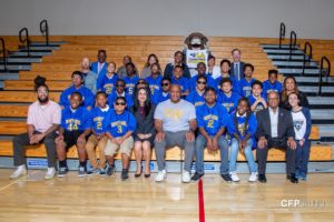 Football players at Inglewood Unified’s Woodworth-Monroe K-8 Academy received new jerseys, shorts, cleats and sunglasses from the Los Angeles Rams on Nov. 13 through a partnership between Inglewood Unified, the City of Inglewood and the Rams. Inglewood Mayor James Butts and the Rams mascot visited the school campus for a celebration of community and partnership.