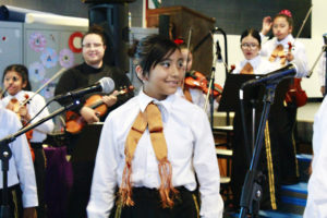 Roosevelt Elementary students and families enjoyed the sounds of Mariachi and the flair of folkloric dance during an early Cinco de Mayo celebration on May 3, which highlighted the school’s Music Immersion Experience (MIE) electives and promoted intercultural understanding. Roosevelt fourth- and fifth-grade Mariachi band students sang and played guitars, violins and trumpets to the tune of “Cerca del Mar,” “La Bamba” and “De Colores” while second- through fifth-grade folkloric dance students performed traditional dances from Chihuahua, Guadalajara and other cities in Mexico.