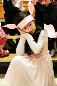Red and gold lights and decorations filled Plymouth Elementary’s cafeteria as students, dressed in traditional Chinese clothing, captivated families and friends with songs, dances, and skits during a Lunar Near Year Family Night Celebration. PTA sponsored the school-wide celebration that drew scores of students, siblings, parents, and grandparents to watch student performances, build paper lanterns, craft fire-breathing dragons out of paper cups, streamers and pompoms, and design a Lunar New Year calendar.
