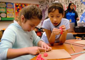 Don Julian outgoing fifth-grader Cassandra Sam blended and shaped clay into the hues and textures of her favorite animal, a penguin, during an after-school art program. The program ran on Tuesdays and Thursdays during the school year for students in grades two through five. Students learned about famous artists’ techniques and works from different time periods to create personal art using the same medium and style.