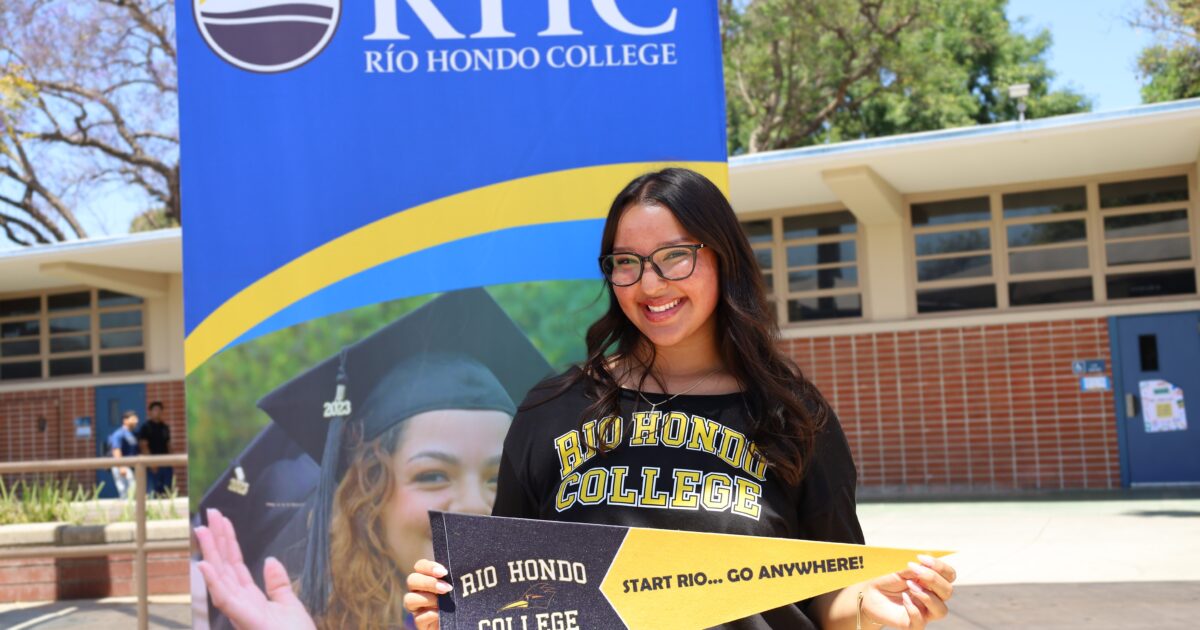 - WUHSD_DUALENROLLMENT: A Whittier Union Class of 2025 graduate celebrates her decision to attend Río Hondo College during a Commitment Day event.