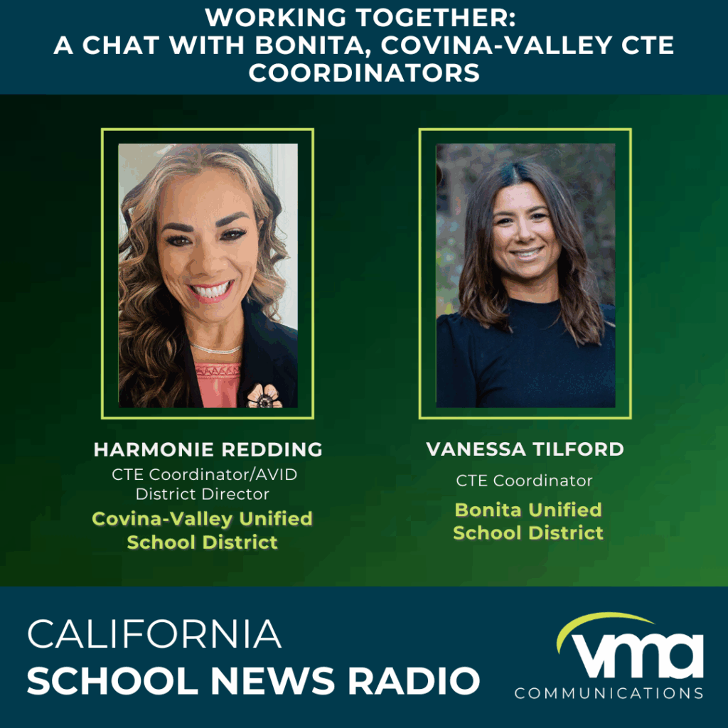 Bonita Unified CTE Coordinator Vanessa Tilford and Covina-Valley Unified CTE Coordinator and AVID District Director Harmonie Redding discuss their processes for bringing career technical education programs to their districts, the benefits of collaborating and sharing information, how data and assessments help students find career paths, working with local employers to develop programs, and the importance of employment companies such as America’s Job Center of California.